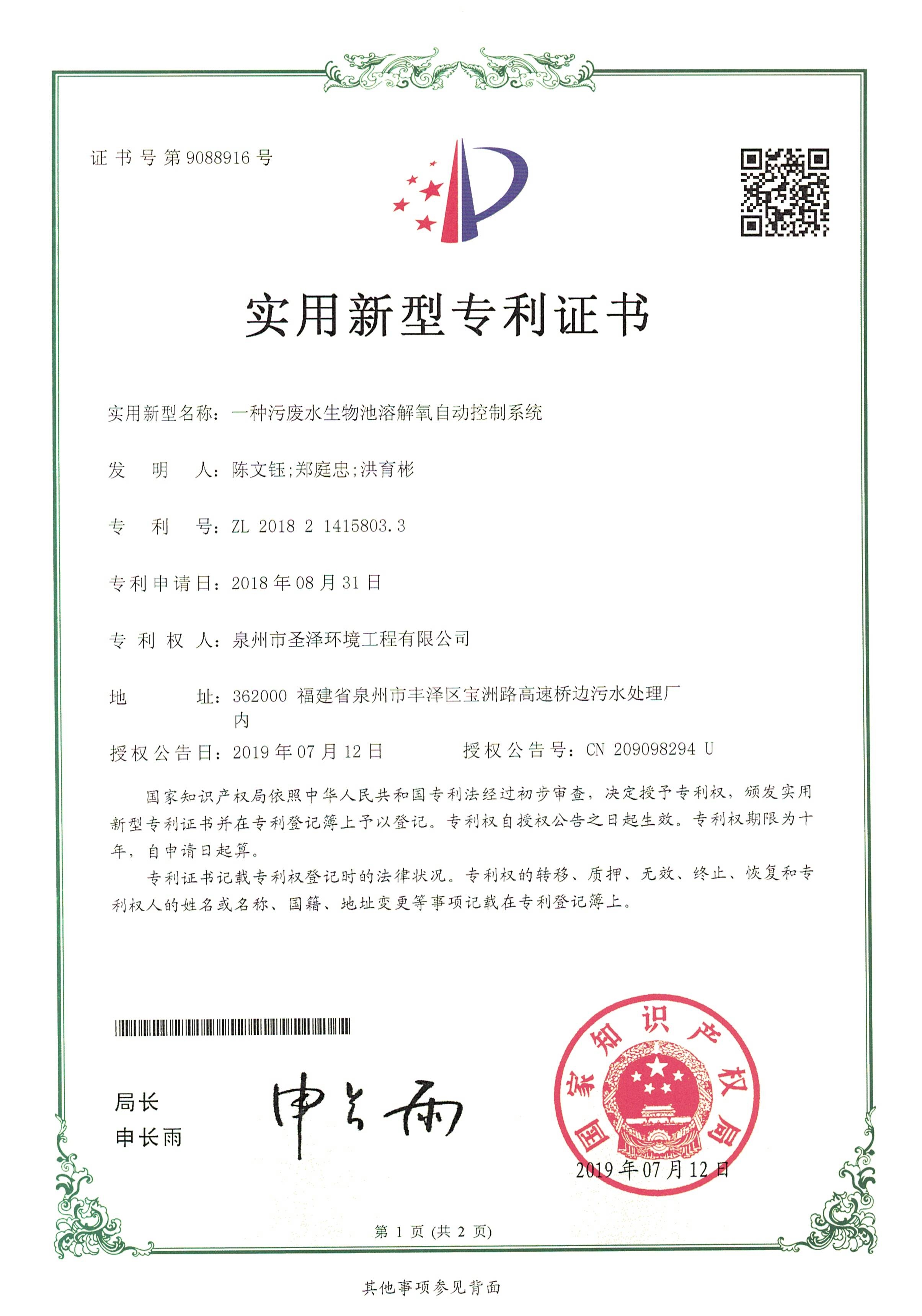 一种污废水生物池溶解氧...